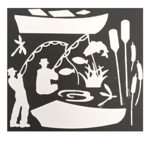 Fishing Boat Craft Die. Create detailed paper projects with this set of 19 thin metal craft dies featuring 2 fishing boats, 2 fishermen, oars, a fishing rod, fish, and aquatic fauna elements. Perfect for paper crafting, card making, scrapbooking, journaling, and DIY crafts, especially great for fishing themes. Suitable for paper, cardstock, vellum, and foil. Compatible with most standard die-cutting machines. Ideal for fishing, nautical, coastal, and outdoor-themed crafts.