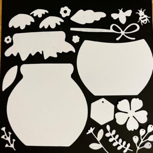 Honey Jar Craft Die. Create charming paper projects with this set of 20 thin metal cutting dies featuring a decorative jar with flowers, bees, and leaves. With a ‘fabric’ lid to add a cute touch to the jar or leave it open and pop your flowers and stems inside. Perfect for paper crafting, card making, scrapbooking, journaling, and DIY crafts. Suitable for paper, cardstock, vellum, and foil. Compatible with most standard die-cutting machines. Ideal for floral, nature, garden, and spring-themed crafts. Perfect for Handmade cards, scrapbooks, planners, journals, and creative paper projects. Approximate size of the jar is 11cms x 11cms.