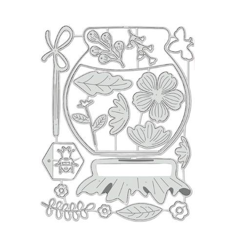 Honey Jar Craft Die. Create charming paper projects with this set of 20 thin metal cutting dies featuring a decorative jar with flowers, bees, and leaves. With a ‘fabric’ lid to add a cute touch to the jar or leave it open and pop your flowers and stems inside. Perfect for paper crafting, card making, scrapbooking, journaling, and DIY crafts. Suitable for paper, cardstock, vellum, and foil. Compatible with most standard die-cutting machines. Ideal for floral, nature, garden, and spring-themed crafts. Perfect for Handmade cards, scrapbooks, planners, journals, and creative paper projects. Approximate size of the jar is 11cms x 11cms.