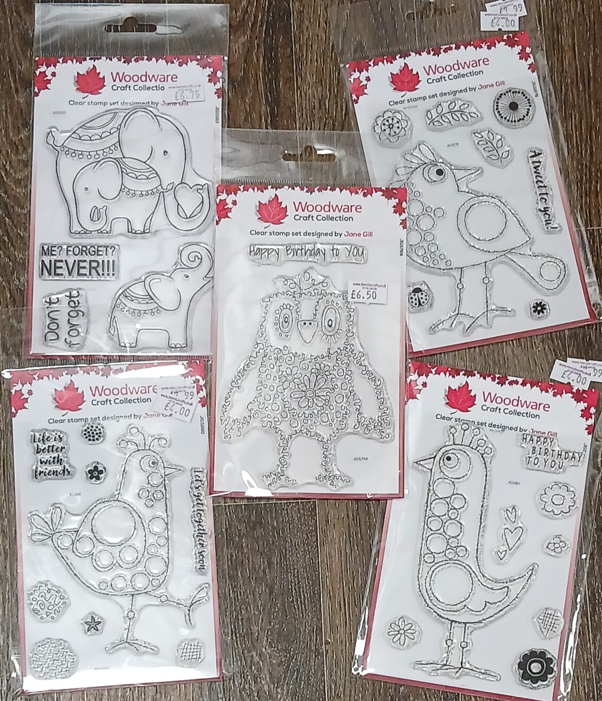 SALE Stamp Set 9. Set of 5 Woodware clear stamps. Please see photo for contents. Only 1 available. Original RRP for set £37.22 (some designs reduced previously) . All 5 for £7.50!