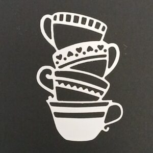 Teacups Craft Die. A set of 4 stacking teacups each with a decorative edges. Consisting of 1 die, the approximate size of the teacups are 7.5cms x 5cms making this the perfect size die for Tea party invitations, bridal shower / baby shower décor, Mother’s Day cards, vintage or shabby chic projects and planner dashboards and junk journals. This die would make beautiful birthday cards and projects. These cups would look lovely decoupaged with added embellishments to show them off. Think summer picnics, lazy afternoon teas and more!